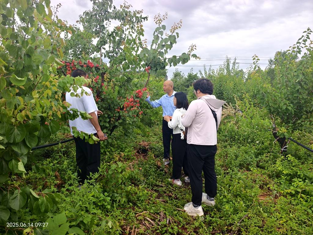 6月13日,省林學(xué)會(huì)會(huì)長(zhǎng)原雙進(jìn),省林技和國(guó)際項(xiàng)目中心副主任王銳一行來(lái)豐園公司考察指導(dǎo)。公司杜錫瑩、李遷恩陪同考察了李杏種質(zhì)資源圃和良種選育圃,杜錫瑩向?qū)<覀兘榻B了公司李杏種質(zhì)資源收集、保存和利用情況。 田間考察結(jié)束后,專家們?cè)诠緯?huì)議室進(jìn)行了座談,對(duì)公司李杏育種和推廣工作提出了指導(dǎo)意見(jiàn)。