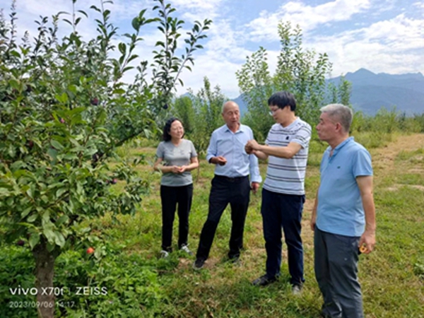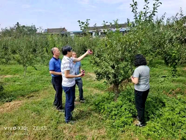 2023年9月6日,市農(nóng)技中心郭曉成研究員和陜師大食品科學(xué)學(xué)院張寶善教授、張海生教授,生命科學(xué)學(xué)院張錚教授來西安豐園果業(yè)科技有限公司考察指導(dǎo)!