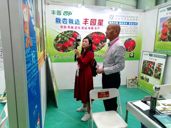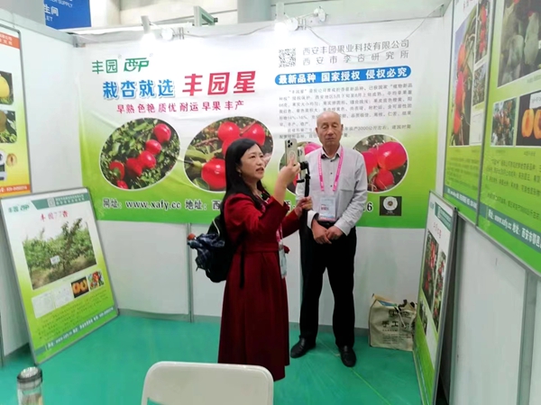 9月20號(hào),“小莉說(shuō)農(nóng)業(yè)”節(jié)目主持人李莉在楊凌農(nóng)高會(huì)西安豐園果業(yè)科技有限公司展位采訪報(bào)道杏新品種“豐園星”。